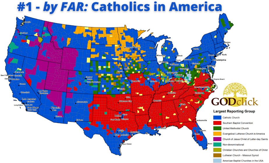 Reach the Catholic DOERS directly through GODclick.com. Staggering Stat: 1 in 4 Americans is Catholic! So whether you download a list with every church in any State such as CA, GA, MI, TX, or VA, realize 25% are statistically Catholic – The “McDonalds of Churches”. But Catholics pre-date McD’s – tracing their leadership past Ray Kroc straight back to Peter.