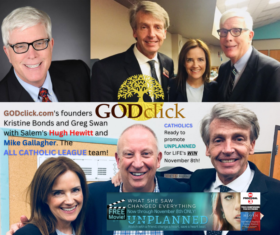 PUBLICITY: Salem’s Mike Gallagher and Hugh Hewitt (Catholics) will most likely promote it heavily. The rest of the team (Charlie Kirk, Dennis Prager, Eric Metaxas, etc.) will be strongly encouraged to promote awareness of its availability – compliance and enthusiastic support is expected. (See below graphic.)