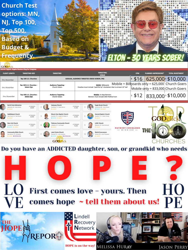 Purpose: 1) To reach church goers whose children and grandchildren are struggling with addiction. 2) Motivate them to tell their loved ones about the The Hope Report.