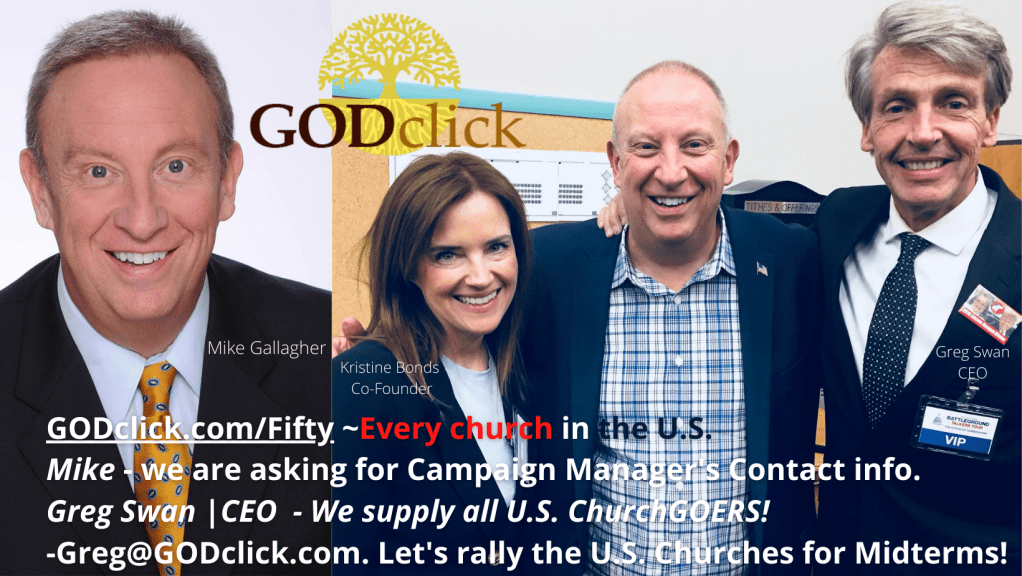 Mike Mike – GODclick.com/Fifty has every church in America. We have every ChurchGOER. Will you help us call out the Churches this November? Asking for the many key Campaign Manager’s contact info. Gallagher and GODclickDownload