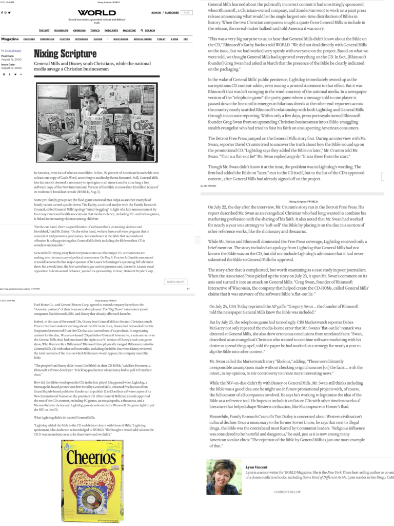 WORLD MAGAZINE NIXING SCRIPTURE LYNN VINCENT